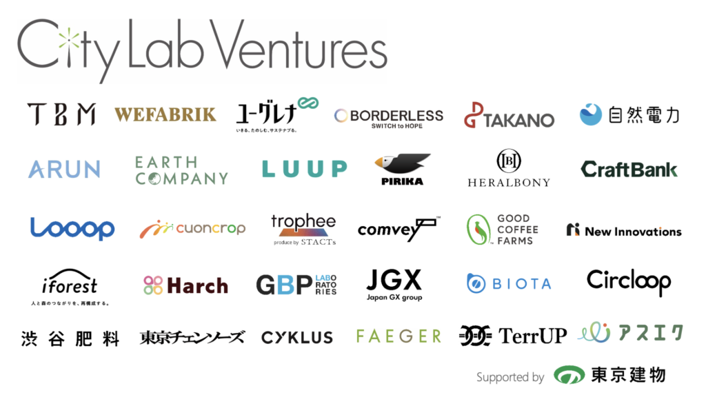 「City Lab Ventures」は、サステナブルな社会の創造とベンチャービジネスの成長の実現を目指すサステナビリティ特化型ベンチャーコミュニティです。2019年4月に6社を発起人としてスタート、現在は19社がメンバーとなっています。